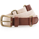 Canvas and faux leather belt. Belt strap and buckle are faux leather. 3 holes for belt buckle. Adjustable length. WRAP certified. BSCI certified. SEDEX certified.Product contains no branded neck label.* Removable Kimble or looped garment tags. Inner seam label holds important product information on one label with a second label containing brand information which can be cut-away.*Please note old stock may contain a fixed branded label