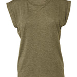 Heather Olive - Women's flowy muscle tee with rolled cuff