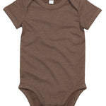 Super soft baby bodysuit with envelope style neckline, binding at edges for shape retention and nickel-free poppers at legs for ease of dressing