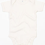 Super soft baby bodysuit with envelope style neckline, binding at edges for shape retention and nickel-free poppers at legs for ease of dressing