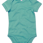Super soft baby bodysuit with envelope style neckline, binding at edges for shape retention and nickel-free poppers at legs for ease of dressing