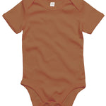 Super soft baby bodysuit with envelope style neckline, binding at edges for shape retention and nickel-free poppers at legs for ease of dressing