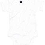 Super soft baby bodysuit with envelope style neckline, binding at edges for shape retention and nickel-free poppers at legs for ease of dressing
