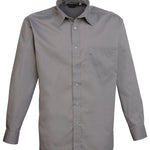 A men’s long sleeved classic fit Poplin shirt available in 27 colours from the Premier 'Colours Collection.' This classic work shirt has a stiffened formal cut collar which accommodates a ties perfectly. The left breast pocket and self-fabric buttons down the placket and cuffs makes for a smart and stylish everyday shirt which carries Premier's easy care label.
