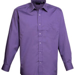 A men’s long sleeved classic fit Poplin shirt available in 27 colours from the Premier 'Colours Collection.' This classic work shirt has a stiffened formal cut collar which accommodates a ties perfectly. The left breast pocket and self-fabric buttons down the placket and cuffs makes for a smart and stylish everyday shirt which carries Premier's easy care label.