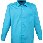 A men’s long sleeved classic fit Poplin shirt available in 27 colours from the Premier 'Colours Collection.' This classic work shirt has a stiffened formal cut collar which accommodates a ties perfectly. The left breast pocket and self-fabric buttons down the placket and cuffs makes for a smart and stylish everyday shirt which carries Premier's easy care label.