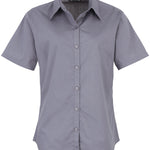 A ladies short sleeved Poplin blouse with semi fitted styling, available in 30 colours. The blouse features soft collar styling with bust and back darts and a rounded bottom hem for an attractive piece of workwear for women.