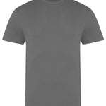Modern fit. Short sleeves. Side seams. Taped neck. Ribbed crew neck. Twin-needle stitching detail on sleeve and bottom hem. Size label only for easy rebranding - colour coded black for unisex. Sedex certified. Vegan certified.