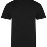 Modern fit. Short sleeves. Side seams. Taped neck. Ribbed crew neck. Twin-needle stitching detail on sleeve and bottom hem. Size label only for easy rebranding - colour coded black for unisex. Sedex certified. Vegan certified.