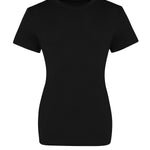 Modern girlie fit. Short sleeves. Side seams. Taped neck. Ribbed crew neck. Twin-needle stitching detail on sleeve and bottom hem. Size label only for easy rebranding - colour coded white for ladies. Vegan certified.