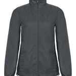 The basic by B&C midseason windbreaker with tricot thermo lining. Windproof, showerproof and water-repellent. Full zip opening with zip pull. Hood concealed inside the collar with hook and loop fastening closing tabs. Ergonomic hood. Self fabric lining inside collar. Forward seams on shoulders for better protection. 2 front pockets with overlap. Elasticated cuffs. Ergonomic side panels. Adjustable bottom hem (with drawcord adjusters). Open back for easy access for decoration. Essential contemporary look. Feminine cut. Fairwear Foundation certified. Vegan certified.
