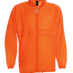 Keep wind out with this full-zip lightweight layer featuring a 100% nylon taffeta. The B&C Sirocco is the market reference windbreaker. Easily packing in a pocket, the jacket comes with an adjustable concealed storm hood and adjustable bottom hem.