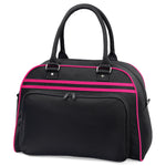 Retro styling. Self fabric carry handles. Zippered front pocket. Zippered internal pocket. Internal mesh pockets. Internal baseboard. Protective base feet. Can be carried by hand or over the shoulder. Contrast detailing. Reach certified.