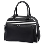 Retro styling. Self fabric carry handles. Zippered front pocket. Zippered internal pocket. Internal mesh pockets. Internal baseboard. Protective base feet. Can be carried by hand or over the shoulder. Contrast detailing. Reach certified.