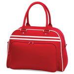Retro styling. Self fabric carry handles. Zippered front pocket. Zippered internal pocket. Internal mesh pockets. Internal baseboard. Protective base feet. Can be carried by hand or over the shoulder. Contrast detailing. Reach certified.