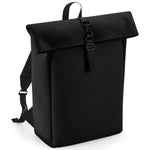 100% Recycled polyester with matte-look PU coating. PVC-free. Water-repellent fabric. Padded internal laptop sleeve, compatible up to 15.6". Minimalist styling. Zipped front pocket. Double-layer base panel for durability. Roll-top closure. Secure clip closure. Padded adjustable shoulder straps. Grab handle. TearAway label for easy rebranding.