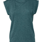 Heather Deep Teal - Women's flowy muscle tee with rolled cuff