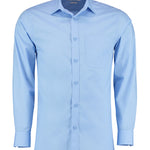 Fused semi cutaway collar. 7-button placket with self-coloured buttons. Rounded hem. back yoke. Single stitching around armholes. Double-stitched sleeves and side seams. Adjustable 1-button cuff with pointed no button cuff placket. Patch pocket with angled corners to left chest as worn. Spare button. Kustom Kit® woven back neck label. SEDEX certified. Oeko-Tex certified.