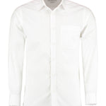 Fused semi cutaway collar. 7-button placket with self-coloured buttons. Rounded hem. back yoke. Single stitching around armholes. Double-stitched sleeves and side seams. Adjustable 1-button cuff with pointed no button cuff placket. Patch pocket with angled corners to left chest as worn. Spare button. Kustom Kit® woven back neck label. SEDEX certified. Oeko-Tex certified.