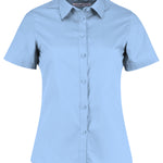 Women's short sleeve tailored poplin shirt. Versatile contemporary styled business shirt with soft collar.