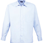 A men’s long sleeved classic fit Poplin shirt available in 27 colours from the Premier 'Colours Collection.' This classic work shirt has a stiffened formal cut collar which accommodates a ties perfectly. The left breast pocket and self-fabric buttons down the placket and cuffs makes for a smart and stylish everyday shirt which carries Premier's easy care label.