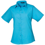 A ladies short sleeved Poplin blouse with semi fitted styling, available in 30 colours. The blouse features soft collar styling with bust and back darts and a rounded bottom hem for an attractive piece of workwear for women.