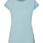 The women's extended shoulder tee from Build Your Brand offers a round-neck line, small rib cuff, extended shoulders and turn-up sleeves. This combination of features creates a sporty and trendy look. The light single Jersey and long cut ensure a comfortable fit. This product is ideal for rebranding, print and embroidery. This item is manufactured in a FAMA Certified factory. FAMA stands for Facility and Merchandise Authorisation and is a high standard production certificate. . Reach certified. FAMA certified.
