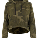 The Women's camo cropped hoodie comes in a sporty cropped cut and the typical camouflage pattern that has always been popular with street fashion. The soft terry fabric is very comfortable. Lightly gathered cuffs and a longer back hem ensure a great fit.