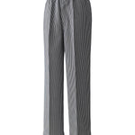A traditional chef's trouser available in two popular mini-check colourways. An easy-wearing comfortable pull-on style for maximum comfort during long shifts in the kitchen. With an elasticated waist and zip fly and a useful rear patch pocket.