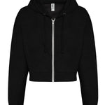 Women's relaxed fit. Cropped cut with drop shoulder design. Full front metal YKK zip. Twin-needle stitching detail. Ribbed cuffs and hem. Brushed inner fleece. Double-fabric hood. Flat lace drawcords. Soft-cotton faced fabric creates ideal printing surface. Simple tear-out label makes it perfect for rebranding. Sedex certified. Vegan certified. WRAP certified.
