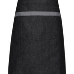 A quirky addition to the denim range, this mid-length apron gives an 'industrial-chic' feel to service with large metal eyelets securing the waist ties in place. The shade on the underside forms the contrast trim detail on the pocket and ties for a great reversible effect.