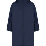 The ultimate team robe is made in a water-resistant fabric with a cosy sherpa fleece lining and three-piece hood. One size fits all, the roomy fit with double-ended full front zip allows wearers to keep warm and get changed underneath the robe. Perfect for wild swimming or wearing on team sidelines. Zipped pockets with fleece lining keep hands warm with multiple inner pockets for keeping belongings safe. Topped off with a large embroidery zip for access to directly decorate.