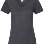 With a fine knit gauge for enhanced printability, the women's Valueweight v-neck T is ideal for all kinds of garment decoration, offering shaped side seams for a feminine fit, a v-neck with cotton/Lycra® rib and self-fabric back neck tape for comfort. Fruit’s women's Valueweight v-neck T is available in a great range of colours.