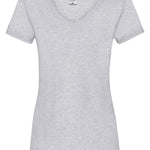 With a fine knit gauge for enhanced printability, the women's Valueweight v-neck T is ideal for all kinds of garment decoration, offering shaped side seams for a feminine fit, a v-neck with cotton/Lycra® rib and self-fabric back neck tape for comfort. Fruit’s women's Valueweight v-neck T is available in a great range of colours.