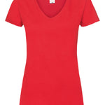 With a fine knit gauge for enhanced printability, the women's Valueweight v-neck T is ideal for all kinds of garment decoration, offering shaped side seams for a feminine fit, a v-neck with cotton/Lycra® rib and self-fabric back neck tape for comfort. Fruit’s women's Valueweight v-neck T is available in a great range of colours.