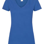 With a fine knit gauge for enhanced printability, the women's Valueweight v-neck T is ideal for all kinds of garment decoration, offering shaped side seams for a feminine fit, a v-neck with cotton/Lycra® rib and self-fabric back neck tape for comfort. Fruit’s women's Valueweight v-neck T is available in a great range of colours.