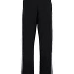 Half elasticated drawcord waist with flat front waist and two side zipped pockets. Straight hem and lower leg opening with zip fastening. Contrast piping down outside leg. Mesh lining to knee.