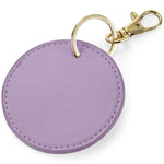 Personalise your Boutique collection with these interchangeable and customisable key clips. Designed for ease of decoration, this 100% leather-look design can be used as a keyring or bag charm. Fine grain Saffiano fabric gives a luxurious finish, while a high-shine, gold metal key clip adds to the premium quality. Also available in rectangular (BG744) and heart-shaped (BG746) styles.