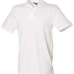 Stretch pique fabric in a slim fitting style with flat knit collar. 2-button placket with dyed to match buttons with side vents for ease of movement. SEDEX certified. Oeko-Tex certified. BSCI certified.