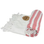 Peshtemals are usually stripe patterned with different colours and usually have fringes matching their design. They are woven from cotton yarn in many sizes. The elegant design of a peshtemal catches everybody's eye at beaches, and also makes them a perfect decorative item for every house. You can choose several for your home, for travel, and for around the pool or beach. This Hamman towel has enjoyed a long history of success because it is expertly woven from long, durable fibres that actually become softer with each wash.