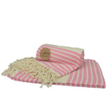 Peshtemals are usually stripe patterned with different colours and usually have fringes matching their design. They are woven from cotton yarn in many sizes. The elegant design of a peshtemal catches everybody's eye at beaches, and also makes them a perfect decorative item for every house. You can choose several for your home, for travel, and for around the pool or beach. This Hamman towel has enjoyed a long history of success because it is expertly woven from long, durable fibres that actually become softer with each wash.
