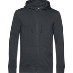 Trendy organic zipped hooded sweatshirt with retail fashion oriented look and feel. Strong styling with great fitting and perfect length. Side seams ensure the best fit and a masculine silhouette. Visible "Hi, I'm Organic" neck tab to highlight the organic value of the garment. Easy branding solution - B&C No Label Solution. Inside single Jersey halfmoon in back to allow easy branding personalisation. Qualitative herringbone neck tape. Retail like features: covered metal zip, single Jersey lined hood, qualitative herringbone neck tape and fashionable drawcord. Vegan certified. Fair Wear certified. Recycled Blended Claim certified. Oeko-Tex certified.