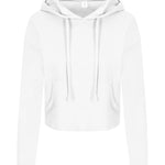 Girlie relaxed fit. Cropped cut with drop shoulder design. Kangaroo pouch pocket. Twin-needle stitching detail. Raw edge hem with cover stitching. Double fabric hood. Flat lace drawcords. Soft cotton faced fabric creates ideal printing surface. Simple tear-out label makes it perfect for rebranding. Brushed inner fleece. WRAP certified. SEDEX certified. Vegan certified.