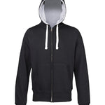 Full zip hoodie. Side panels for stylish fit. Brass zip covered with chunky rib detail. Overlock stitching detail throughout. Double fabric hood with heather grey waffle fabric inner. Chunky white flat lace drawcord. Kangaroo pouch pocket. Deep ribbed cuff and hem. Worldwide Responsible Accredited Production (WRAP) certified production. Soft cotton faced fabric creates ideal printing surface. WRAP certified. SEDEX certified. Vegan certified.