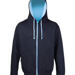 Full zip hoodie with contrast plastic zip. Twin needle stitching detailing. Double fabric hood with contrast inner. Contrast flat lace drawcords. Kangaroo pouch pocket. Ribbed cuff and hem. Worldwide Responsible Accredited Production (WRAP) certified production. Soft cotton faced fabric creates ideal printing surface. Simple tear out label makes it perefct for rebranding. Brushed inner fleece. WRAP certified. SEDEX certified. Vegan certified.