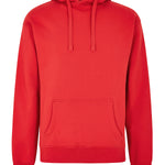 Over the head hoodie. Self-colour Jersey lined hood. Jersey binding to back neck. Taped shoulder. Self-fabric full needle rib double layered cuff and welt. Double stitched armhole. Flat lace drawcord running through hood. Central kangaroo pocket with double stitching for durability. Kustom Kit® tear-out label. SEDEX certified. Oeko-Tex certified.