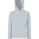 Made with a double fabric hood and shaped side seams for a feminine fit, the women's classic hooded sweat is perfect for promotions, music merchandise, licensing, tourism and more. Details include a front kangaroo pocket and self-coloured flat drawcord and cotton/Lycra® waist and cuff ribs for added warmth. This garment is available in a wide range of colours.