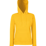 Made with a double fabric hood and shaped side seams for a feminine fit, the women's classic hooded sweat is perfect for promotions, music merchandise, licensing, tourism and more. Details include a front kangaroo pocket and self-coloured flat drawcord and cotton/Lycra® waist and cuff ribs for added warmth. This garment is available in a wide range of colours.