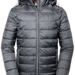 A team is not just as simple as that. It's about the team believing in the team. It's about sharing a vision which urges you to use your individuality to achieve a higher goal. The right team outfit inspires this commitment. You can incorporate your team colours in the Nano hooded jacket. Day and night! Regardless of the weather! This model is ideal for colder conditions and provides an ultramodern and environmentally friendly thermal insulation by Dupont™ Sorona®. The PFC-free finish Aquapel by Nanotex® ensures that rain and moisture rolls off in a completely natural way. The Nano hooded jacket by Russell is the perfect team jacket.