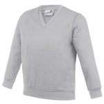 V-neckline sweatshirt. Ribbed neckline, cuffs and hemline. Soft cotton faced fabric creates ideal printing surface. Name label. Taped neck at back neck. Twin needle stitching for durability. Worldwide Responsible Accredited Production (WRAP) certified production. Set in sleeves. WRAP certified. Vegan certified. SEDEX certified.